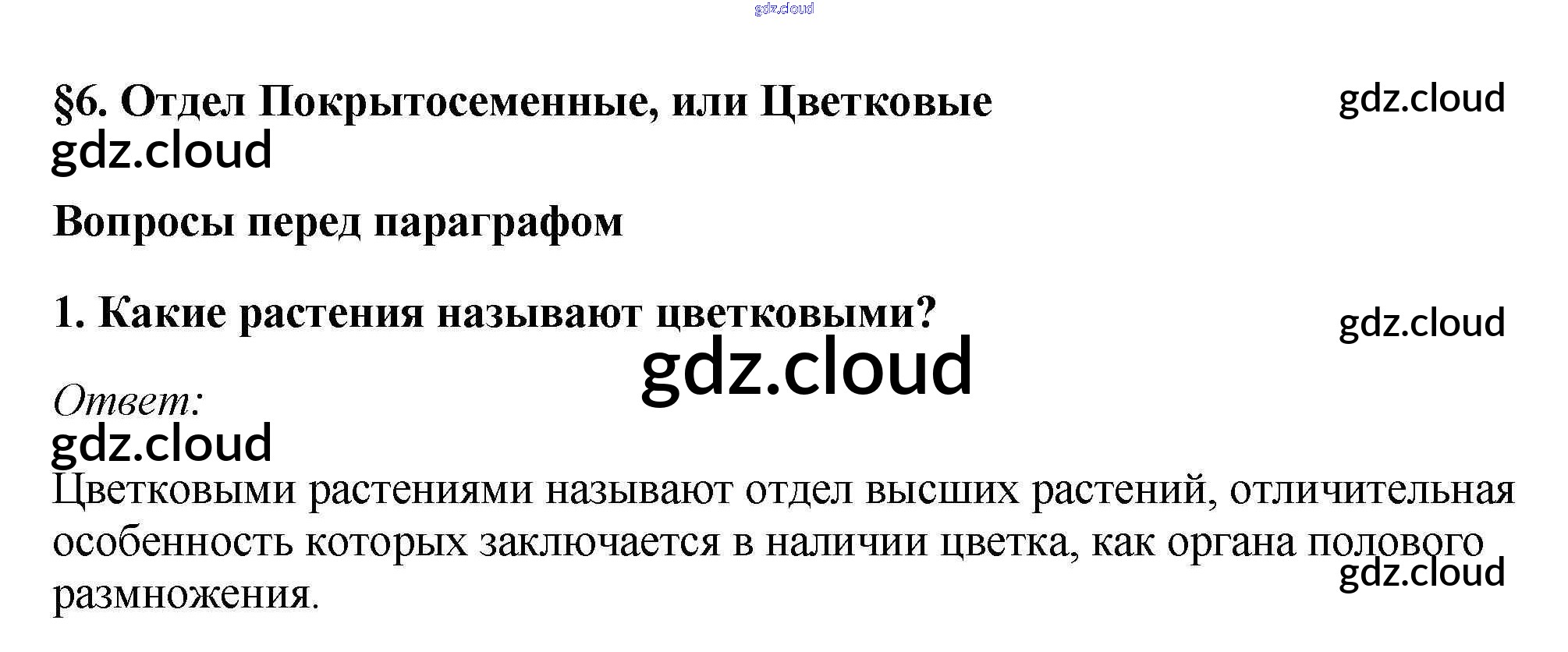 Вопросы перед параграфом Ответы к §6. Отдел Покрытосеменные, или Цветковые по Биологии 7 класс Учебник Пасечник Линейный курс Дрофа
