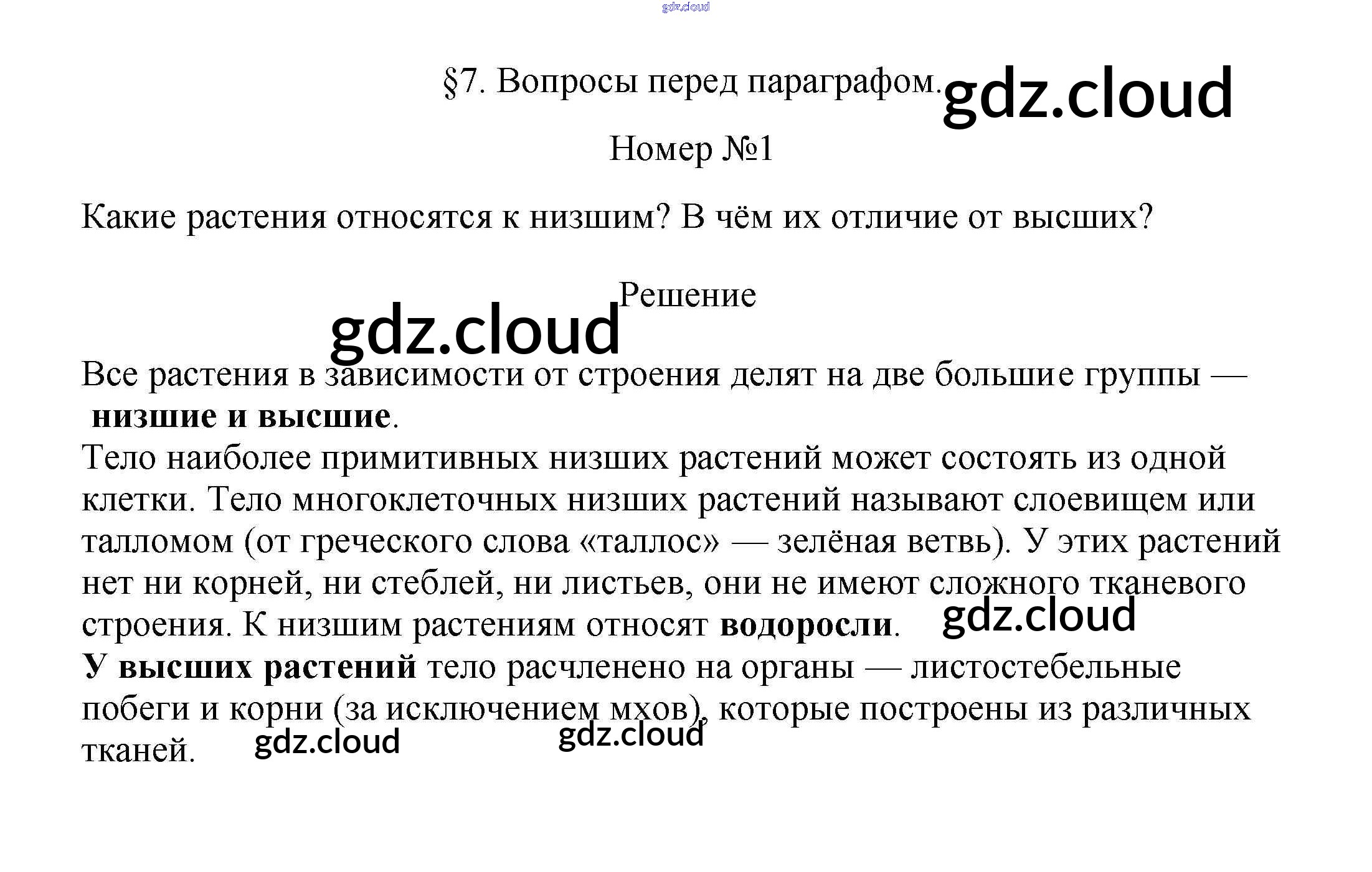 Вопросы перед параграфом Ответы к §7. Происхождение растений. Основные этапы развития растительного мира по Биологии 7 класс Учебник Пасечник Линейный курс Дрофа