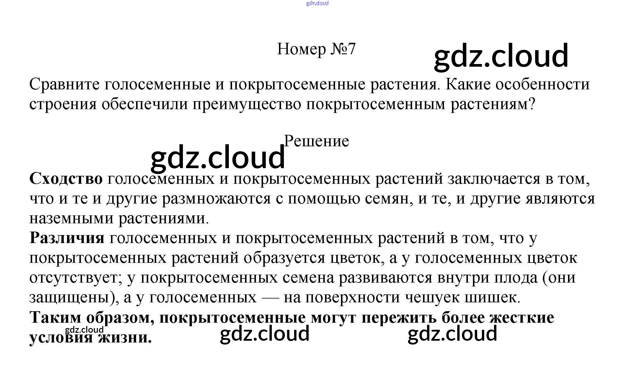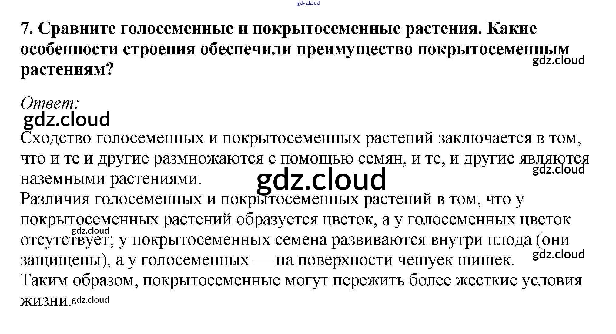 Вопросы Ответы к §7. Происхождение растений. Основные этапы развития растительного мира по Биологии 7 класс Учебник Пасечник Линейный курс Дрофа