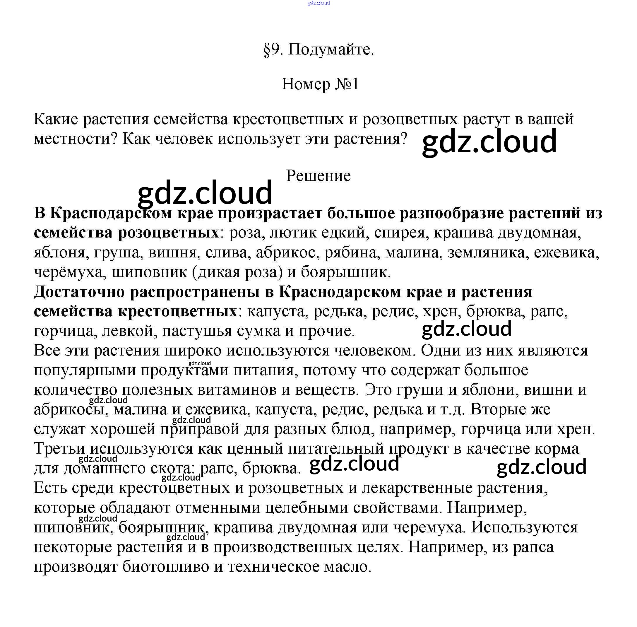 Подумайте Ответы к §9. Класс двудольные. Семейства Крестоцветные (Капустные) и Розоцветные по Биологии 7 класс Учебник Пасечник Линейный курс Дрофа