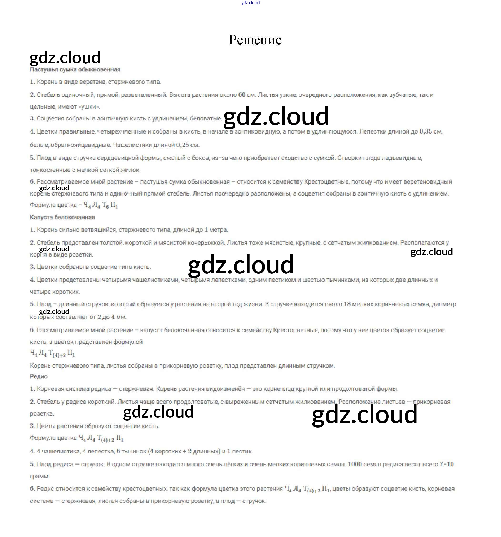Задания Ответы к §9. Класс двудольные. Семейства Крестоцветные (Капустные) и Розоцветные по Биологии 7 класс Учебник Пасечник Линейный курс Дрофа