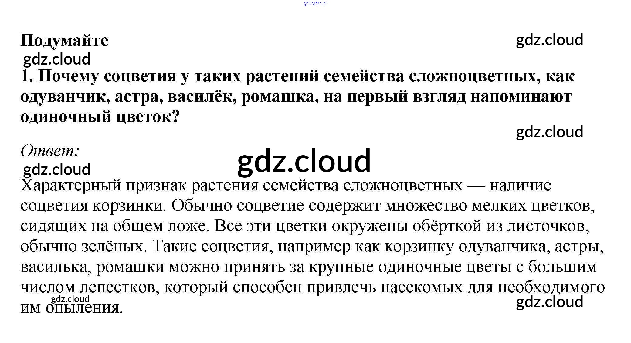 Подумайте Ответы к §10. Класс Двудольные. Семейства Пасленовые, Мотыльковые (Бобовые) и Сложноцветные (Астровые) по Биологии 7 класс Учебник Пасечник Линейный курс Дрофа