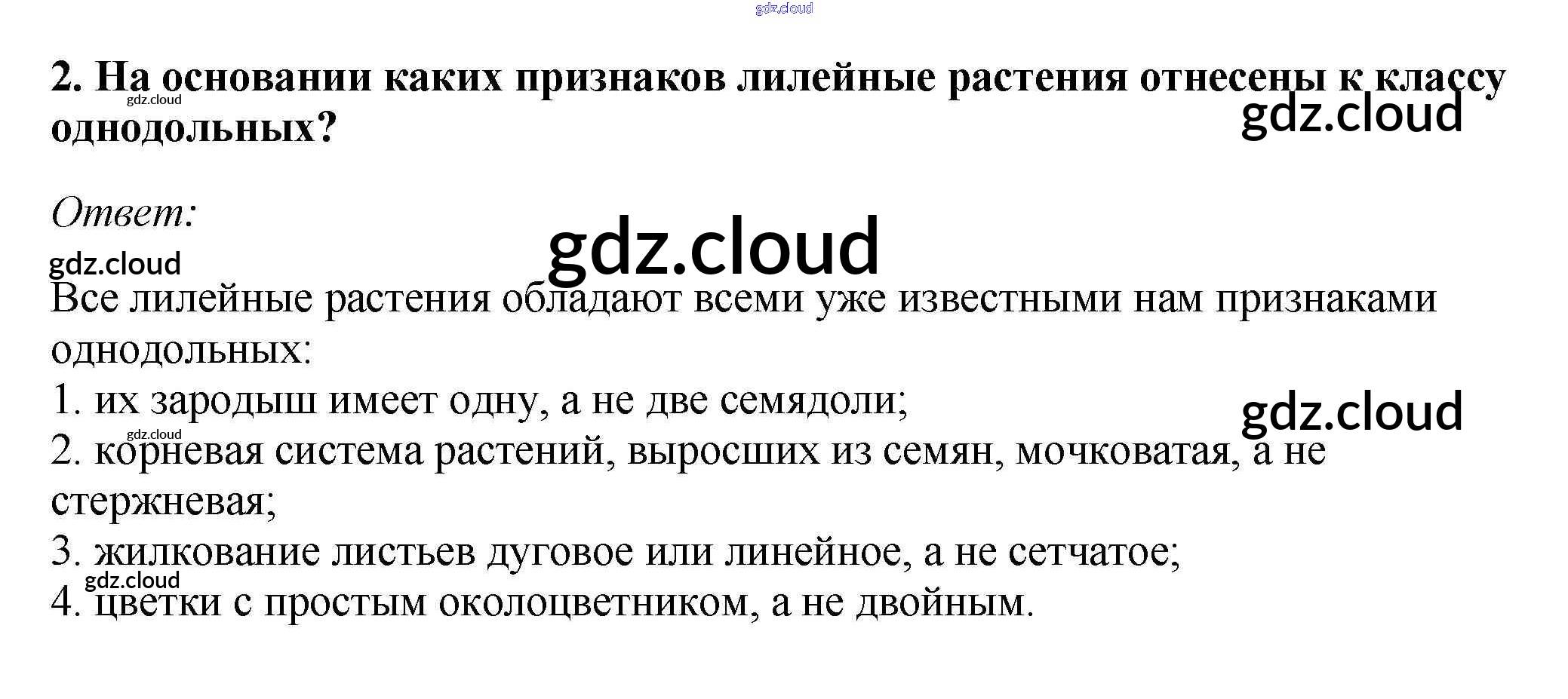Вопросы Ответы к §11. Класс Однодольные. Семейства Лилейные и Злаки по Биологии 7 класс Учебник Пасечник Линейный курс Дрофа