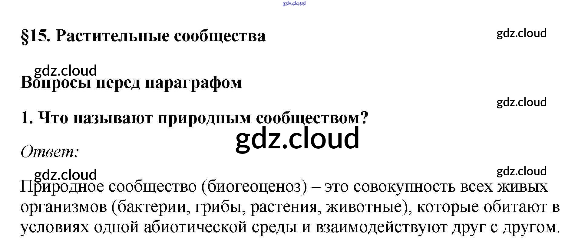 Вопросы перед параграфом Ответы к §15. Растительные сообщества по Биологии 7 класс Учебник Пасечник Линейный курс Дрофа