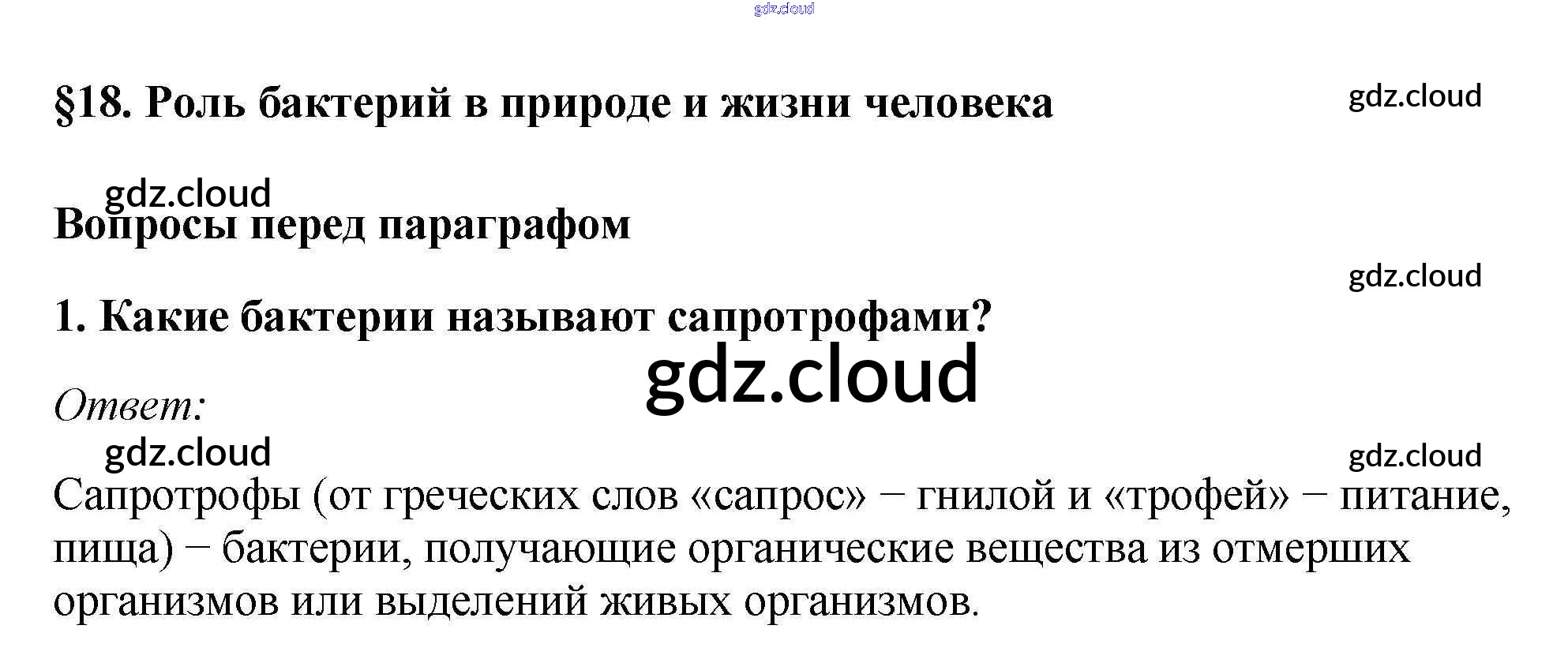 Вопросы перед параграфом Ответы к §18. Роль бактерий в природе и жизни человека по Биологии 7 класс Учебник Пасечник Линейный курс Дрофа