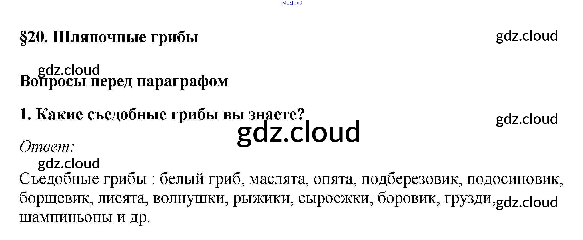 Вопросы перед параграфом Ответы к §20. Шляпочные грибы по Биологии 7 класс Учебник Пасечник Линейный курс Дрофа