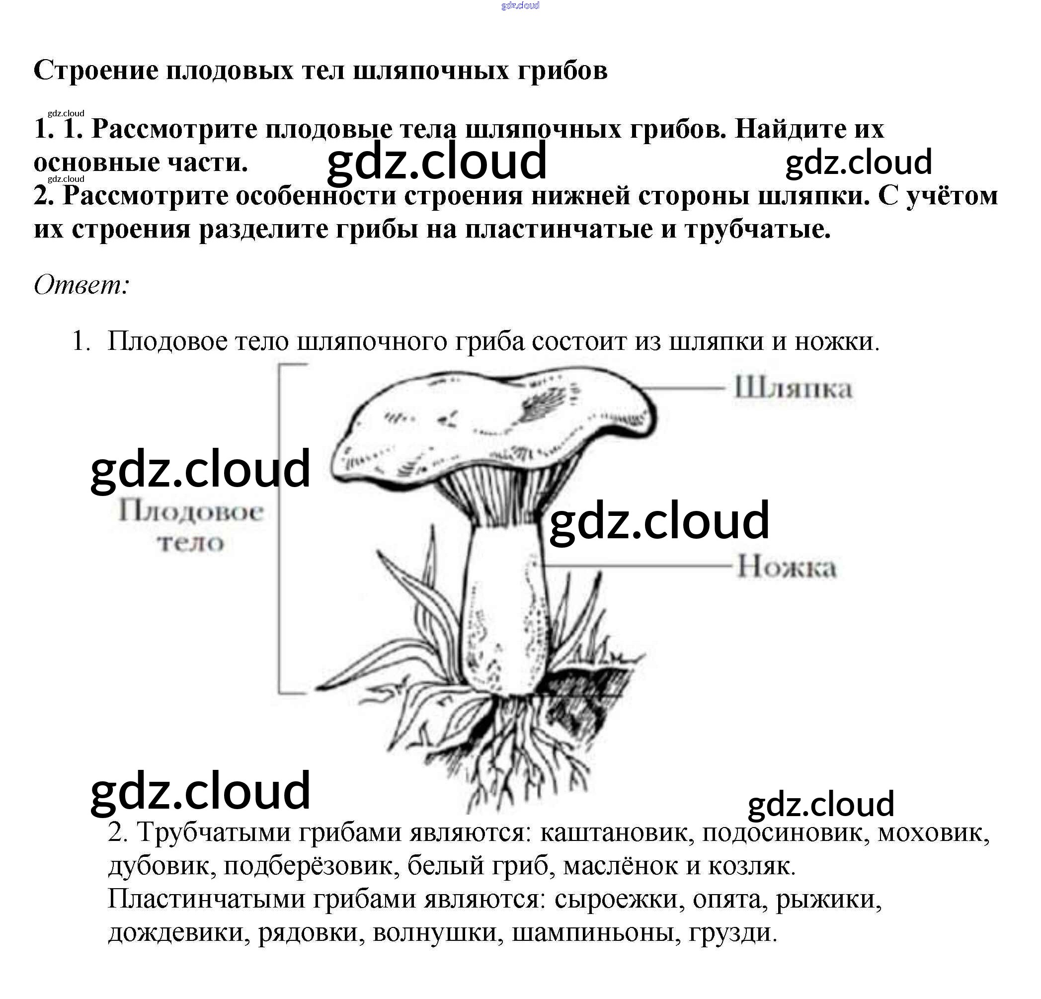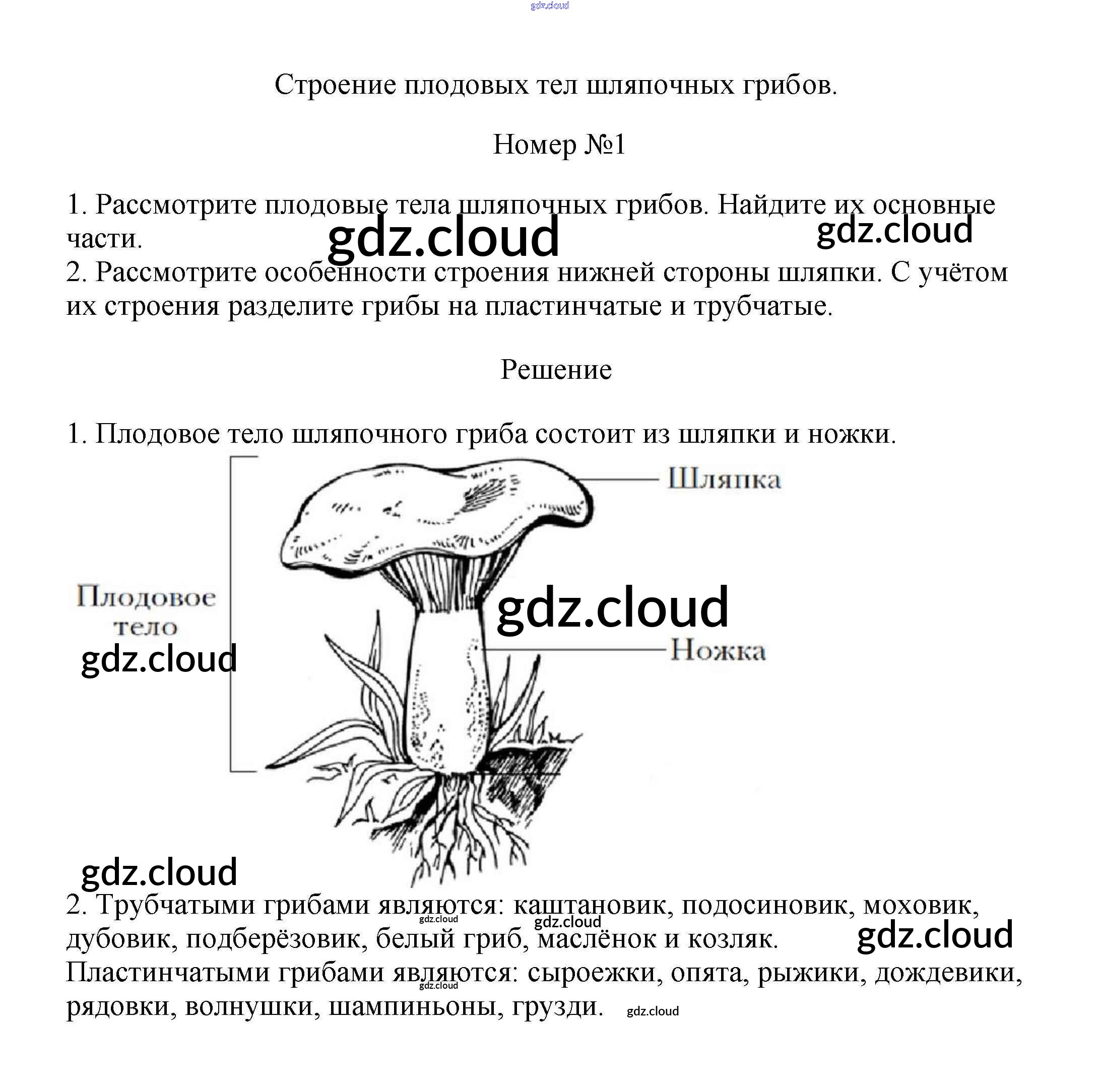 Строение плодовых тел шляпочных грибов Ответы к §20. Шляпочные грибы по Биологии 7 класс Учебник Пасечник Линейный курс Дрофа