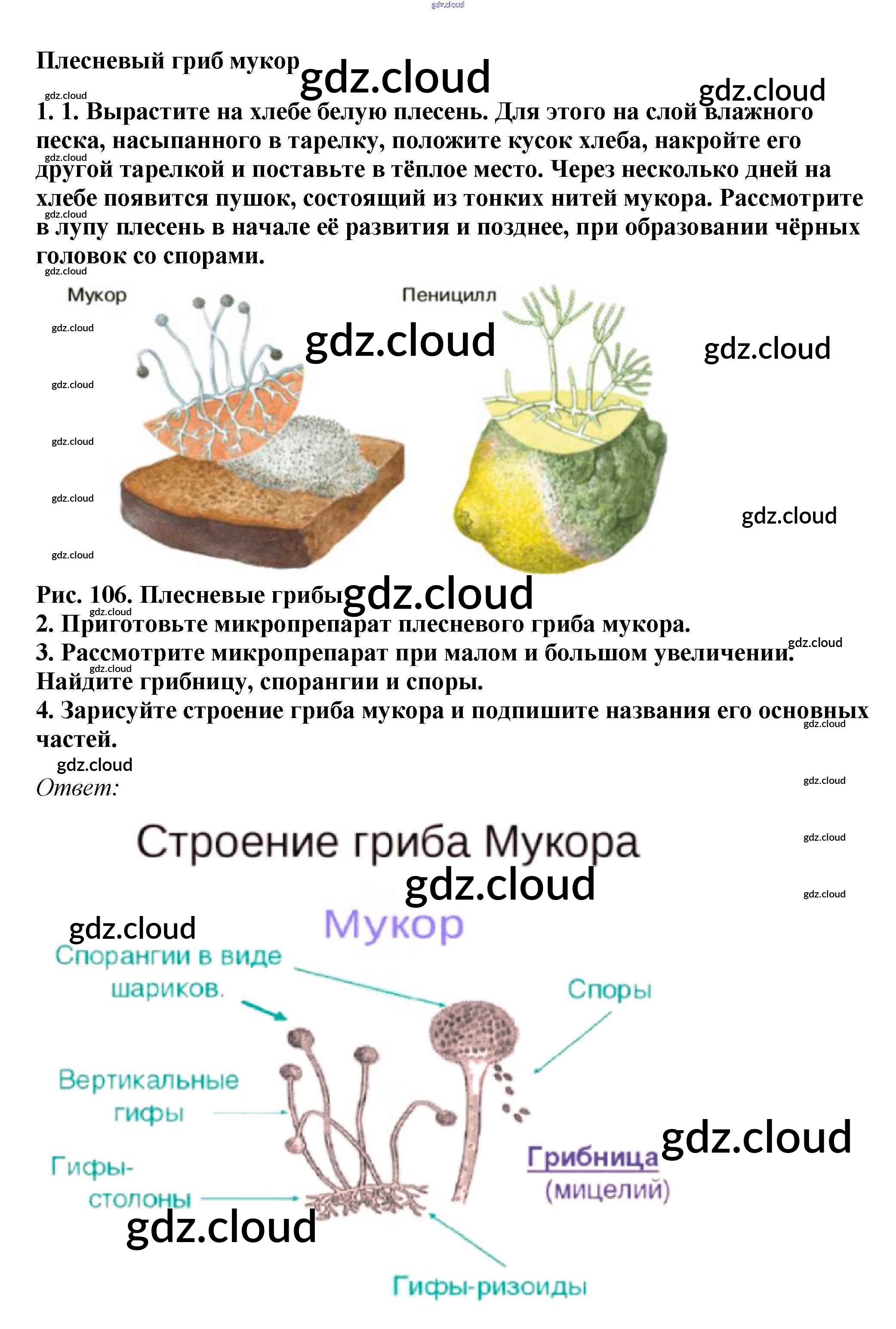 Плесневый гриб мукор Ответы к §21. Плесневые грибы и дрожжи по Биологии 7 класс Учебник Пасечник Линейный курс Дрофа