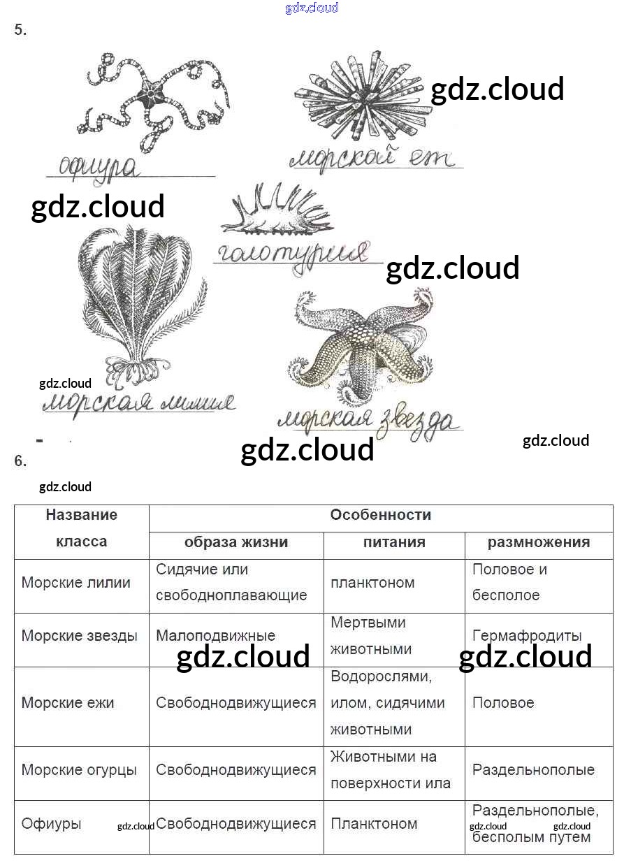 Ответы к Страницам по Биологии 7 класс Рабочая тетрадь Латюшин УМК Дрофа