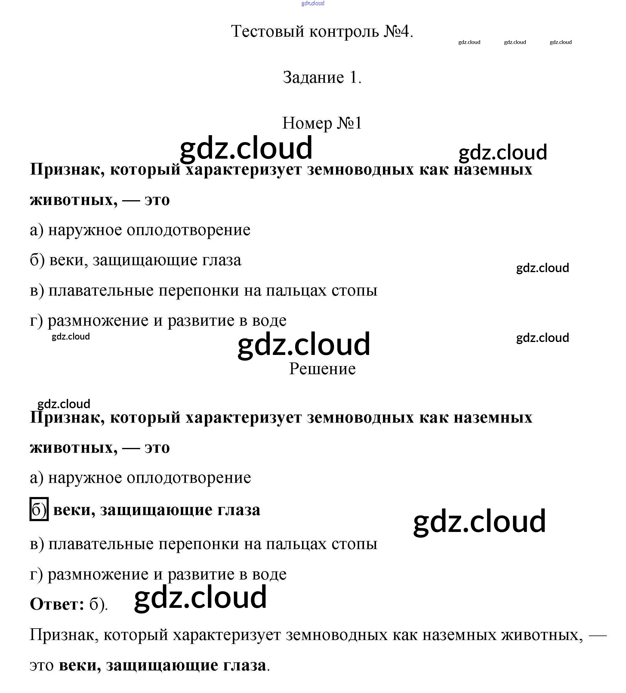 Задание 1 Тестовый контроль 4 по Биологии 7 класс Рабочая тетрадь Пасечник Линия жизни Просвещение