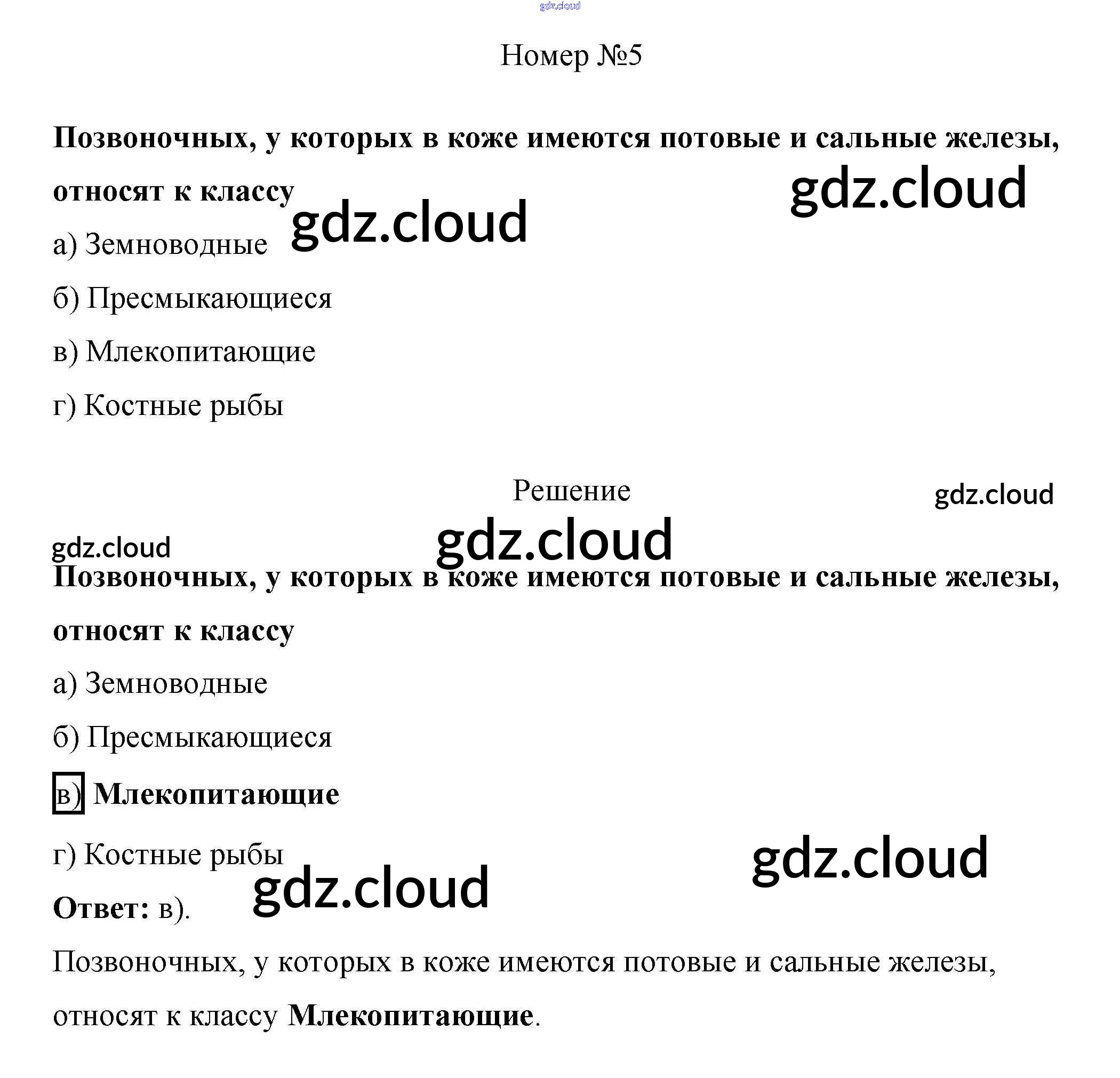 Ответ на задание 5 Рабочая тетрадь Биология за 7 (седьмой) класс Пасечник Линия жизни 2016