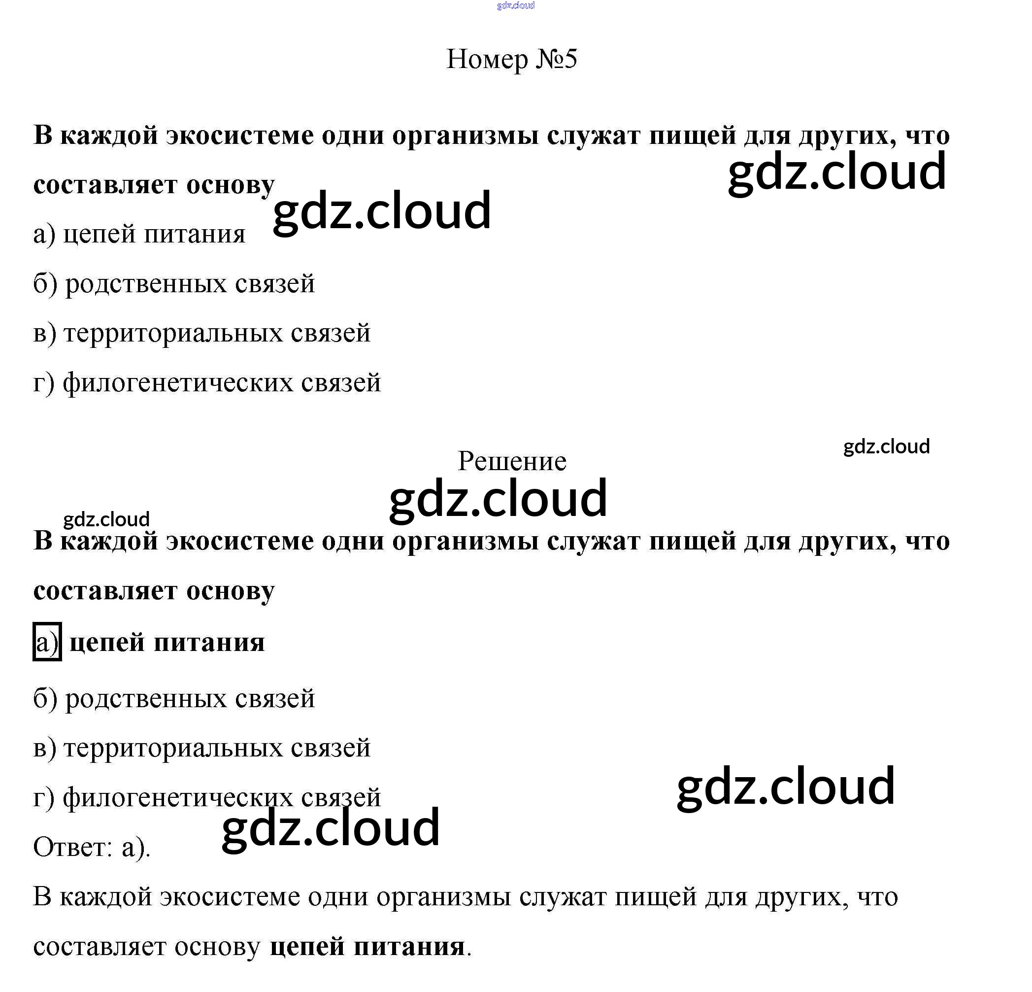 Ответ на задание 5 Рабочая тетрадь Биология за 7 (седьмой) класс Пасечник Линия жизни 2016