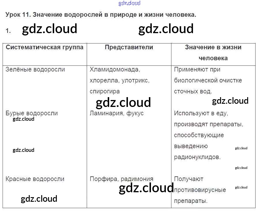тетрадь 2016 / §11. значение водорослей в природе и жизни человека / 1