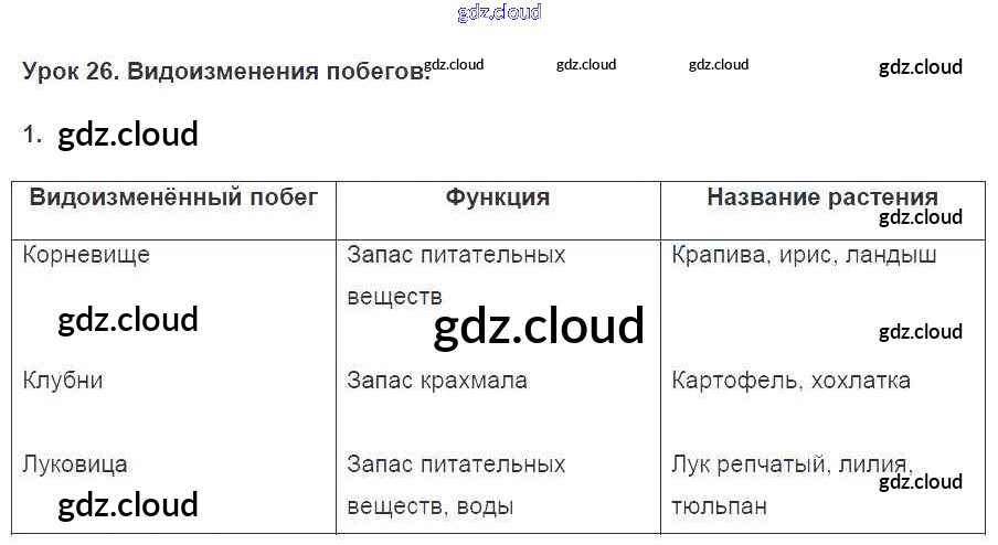 §26. Видоизменение побегов Ответы к тетради 2016 по Биологии 7 класс Рабочая тетрадь Пасечник Линия жизни Просвещение