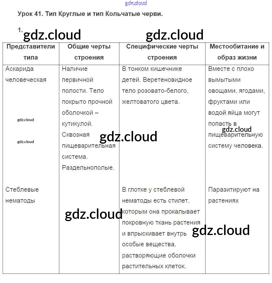 тетрадь 2016 / §41. тип Круглые и тип Кольчатые черви / 1