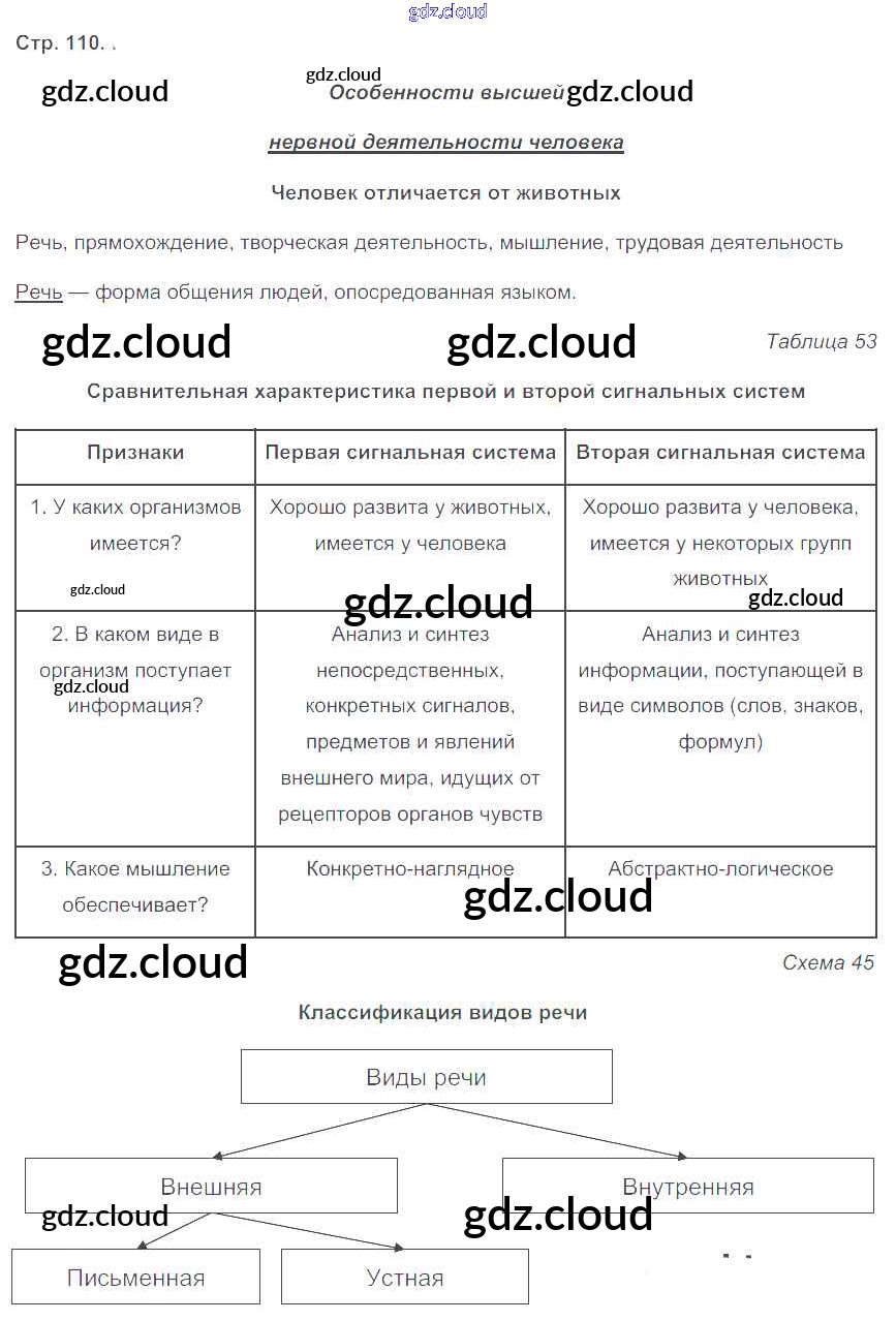 Ответ на задание 110 Рабочая тетрадь Биология за 8 (восьмой) класс Бодрова 2017 ФГОС онлайн и без номера телефона.