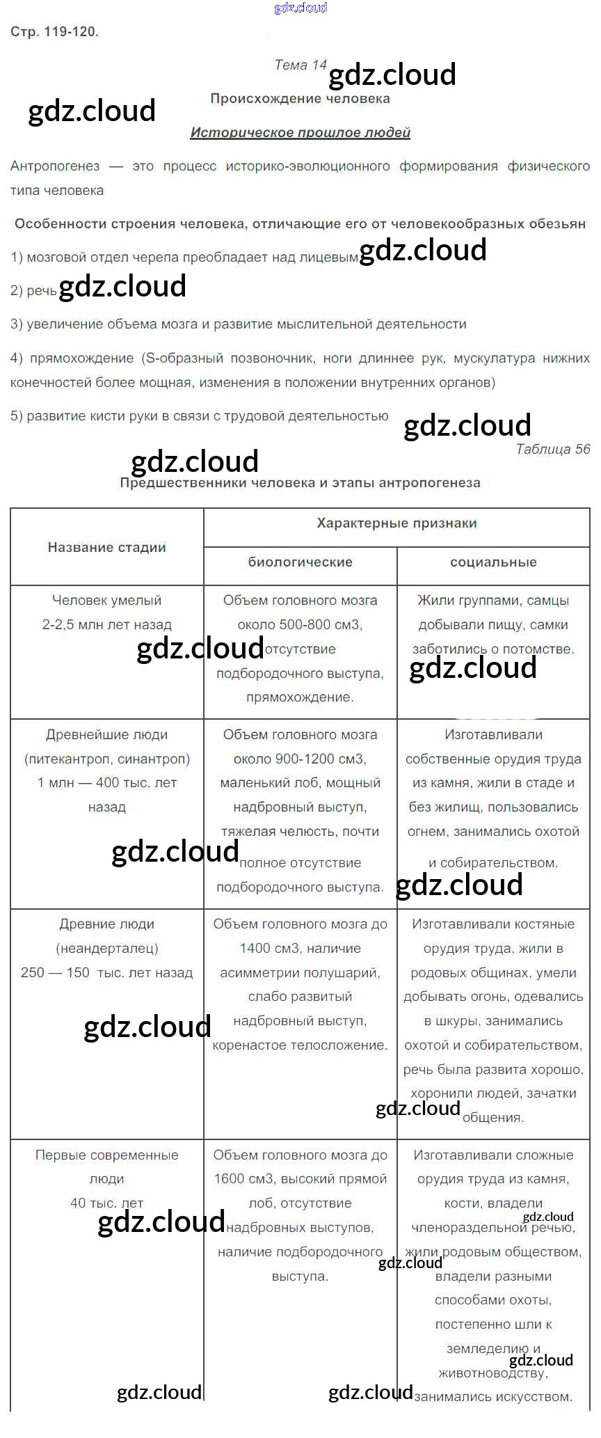 Ответ на задание 119 Рабочая тетрадь Биология за 8 (восьмой) класс Бодрова 2017 ФГОС онлайн и без номера телефона.