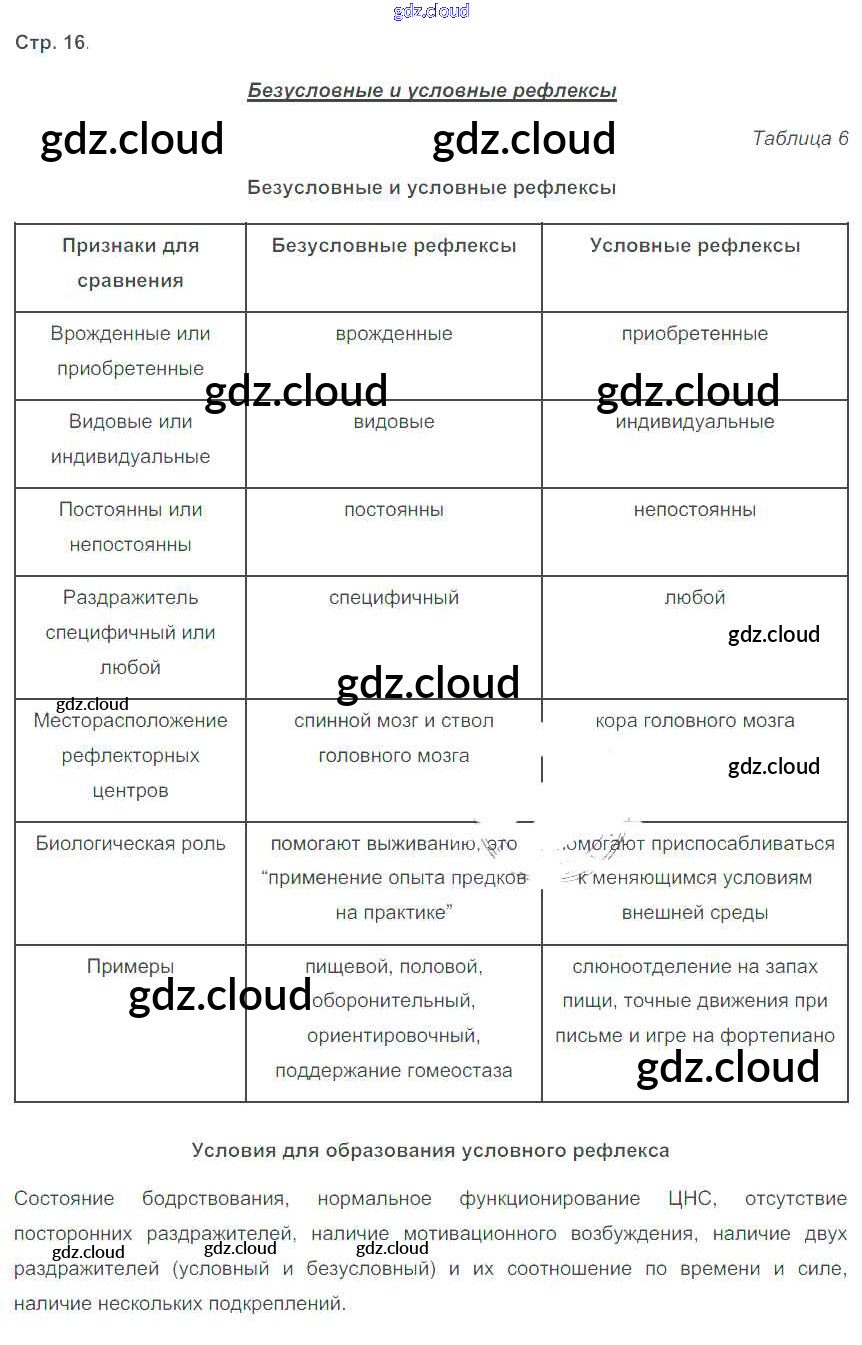 Ответ на задание 16 Рабочая тетрадь Биология за 8 (восьмой) класс Бодрова 2017 ФГОС онлайн и без номера телефона.