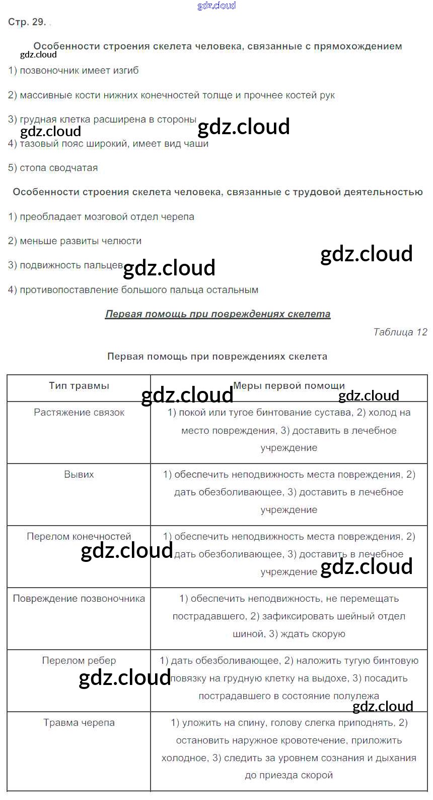 Ответ на задание 29 Рабочая тетрадь Биология за 8 (восьмой) класс Бодрова 2017 ФГОС онлайн и без номера телефона.