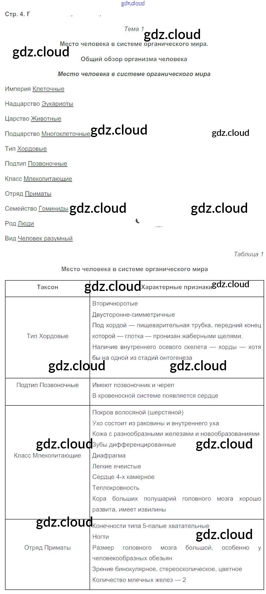 Ответ на задание 4 Рабочая тетрадь Биология за 8 (восьмой) класс Бодрова 2017 ФГОС онлайн и без номера телефона.