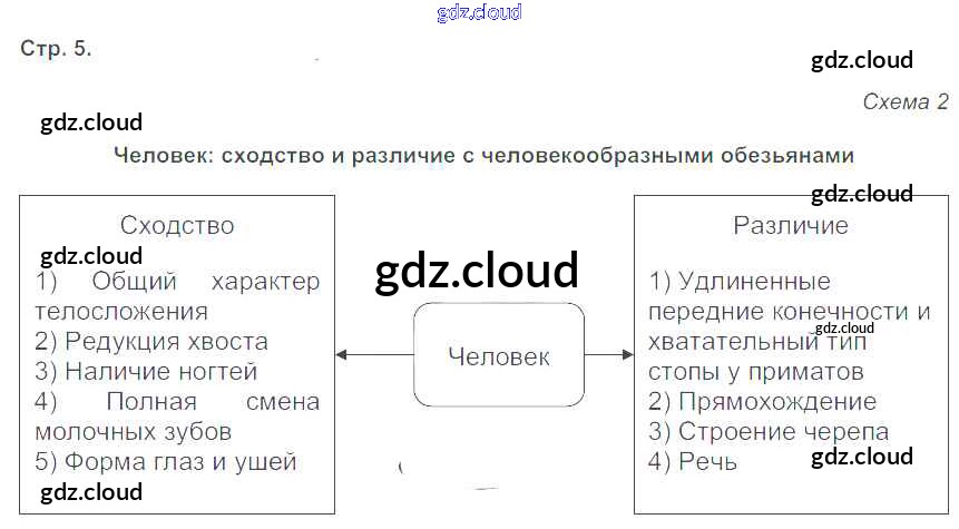 Ответ на задание 5 Рабочая тетрадь Биология за 8 (восьмой) класс Бодрова 2017 ФГОС онлайн и без номера телефона.