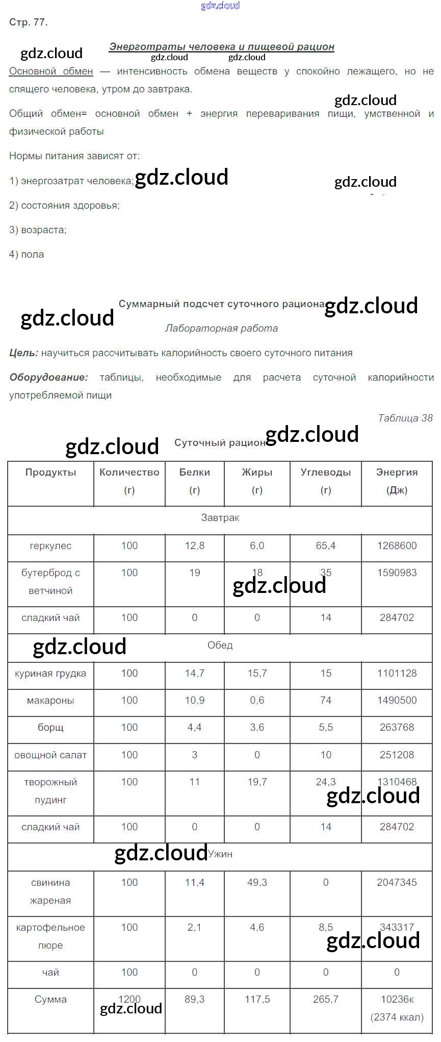 Ответ на задание 77 Рабочая тетрадь Биология за 8 (восьмой) класс Бодрова 2017 ФГОС онлайн и без номера телефона.