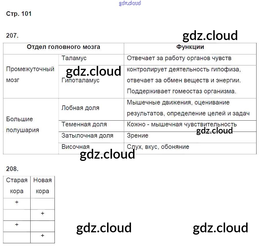 Ответ на задание 101 Рабочая тетрадь Биология за 8 (восьмой) класс Колесов, Маш, Беляев УМК 2018 ФГОС онлайн и без номера телефона.