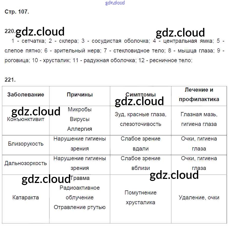 Ответ на задание 107 Рабочая тетрадь Биология за 8 (восьмой) класс Колесов, Маш, Беляев УМК 2018 ФГОС онлайн и без номера телефона.