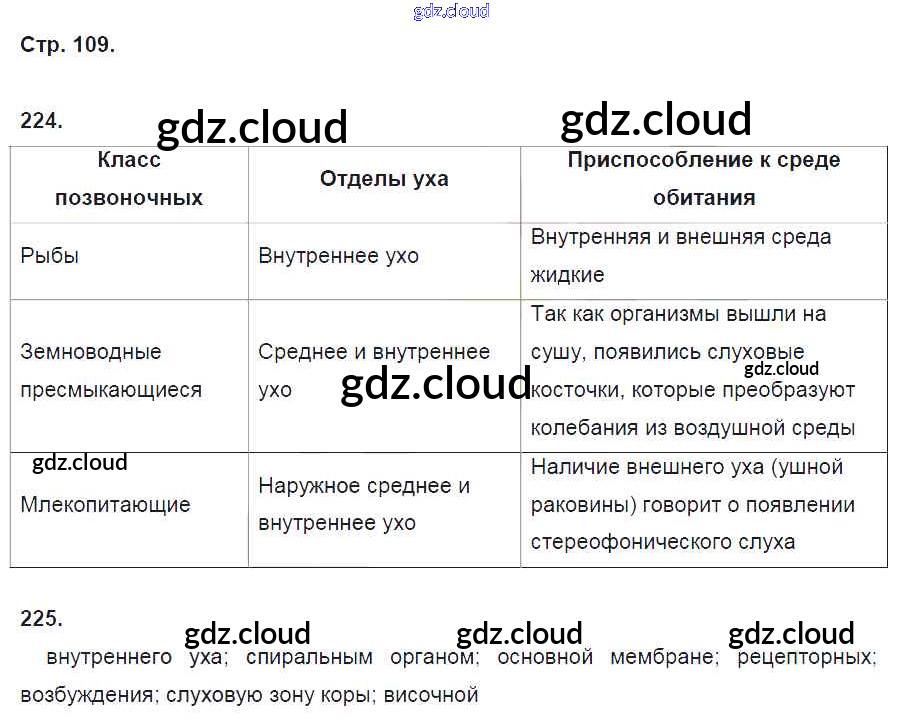 Ответ на задание 109 Рабочая тетрадь Биология за 8 (восьмой) класс Колесов, Маш, Беляев УМК 2018 ФГОС онлайн и без номера телефона.