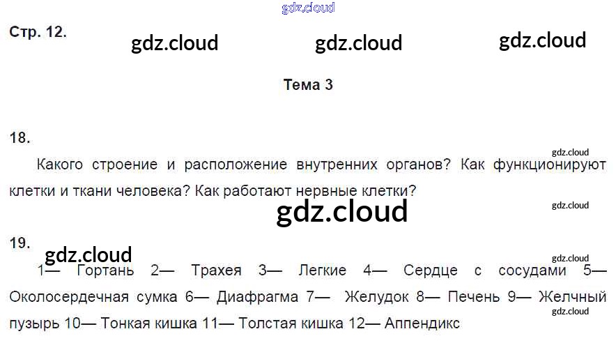 Ответ на задание 12 Рабочая тетрадь Биология за 8 (восьмой) класс Колесов, Маш, Беляев УМК 2018 ФГОС онлайн и без номера телефона.