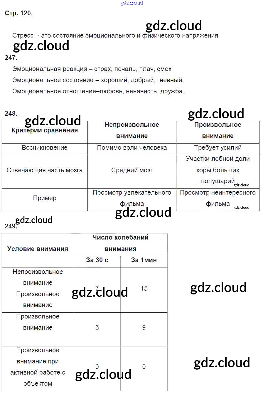 Ответ на задание 120 Рабочая тетрадь Биология за 8 (восьмой) класс Колесов, Маш, Беляев УМК 2018 ФГОС онлайн и без номера телефона.