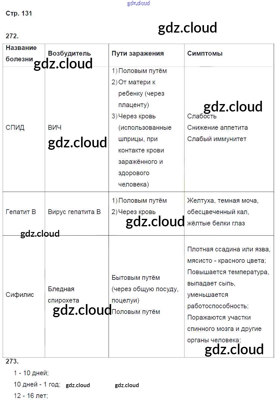 Ответ на задание 131 Рабочая тетрадь Биология за 8 (восьмой) класс Колесов, Маш, Беляев УМК 2018 ФГОС онлайн и без номера телефона.