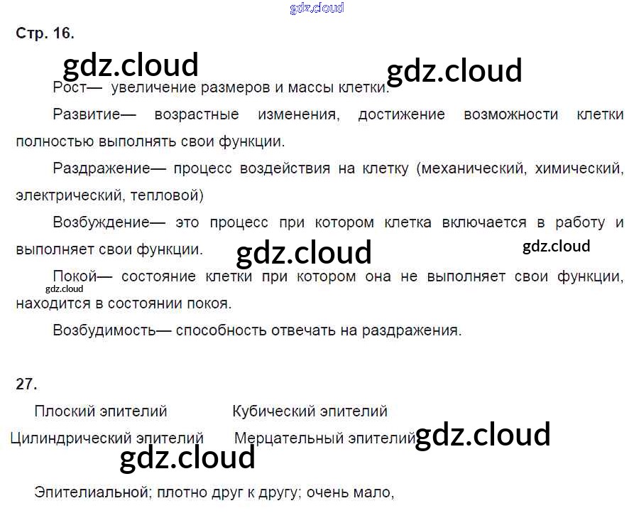 Ответ на задание 16 Рабочая тетрадь Биология за 8 (восьмой) класс Колесов, Маш, Беляев УМК 2018 ФГОС онлайн и без номера телефона.