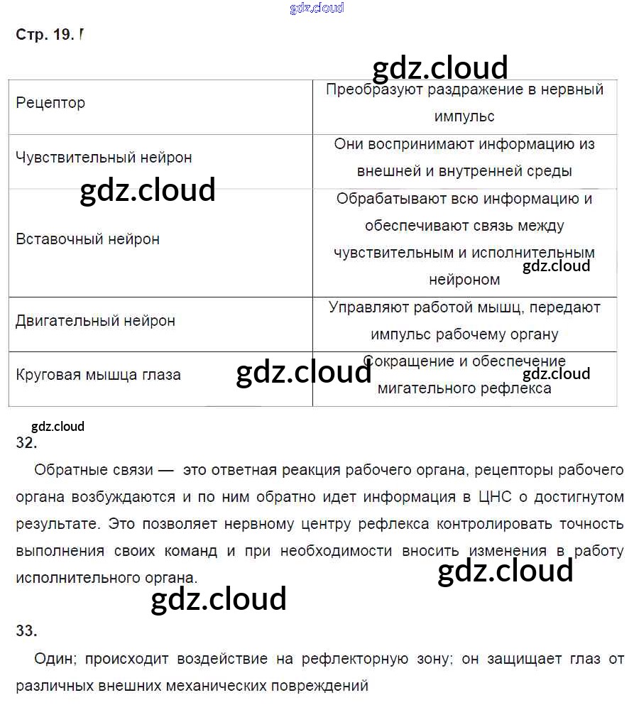 Ответ на задание 19 Рабочая тетрадь Биология за 8 (восьмой) класс Колесов, Маш, Беляев УМК 2018 ФГОС онлайн и без номера телефона.