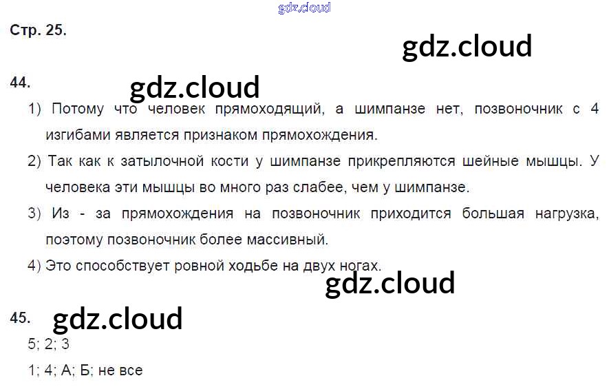 Ответ на задание 25 Рабочая тетрадь Биология за 8 (восьмой) класс Колесов, Маш, Беляев УМК 2018 ФГОС онлайн и без номера телефона.