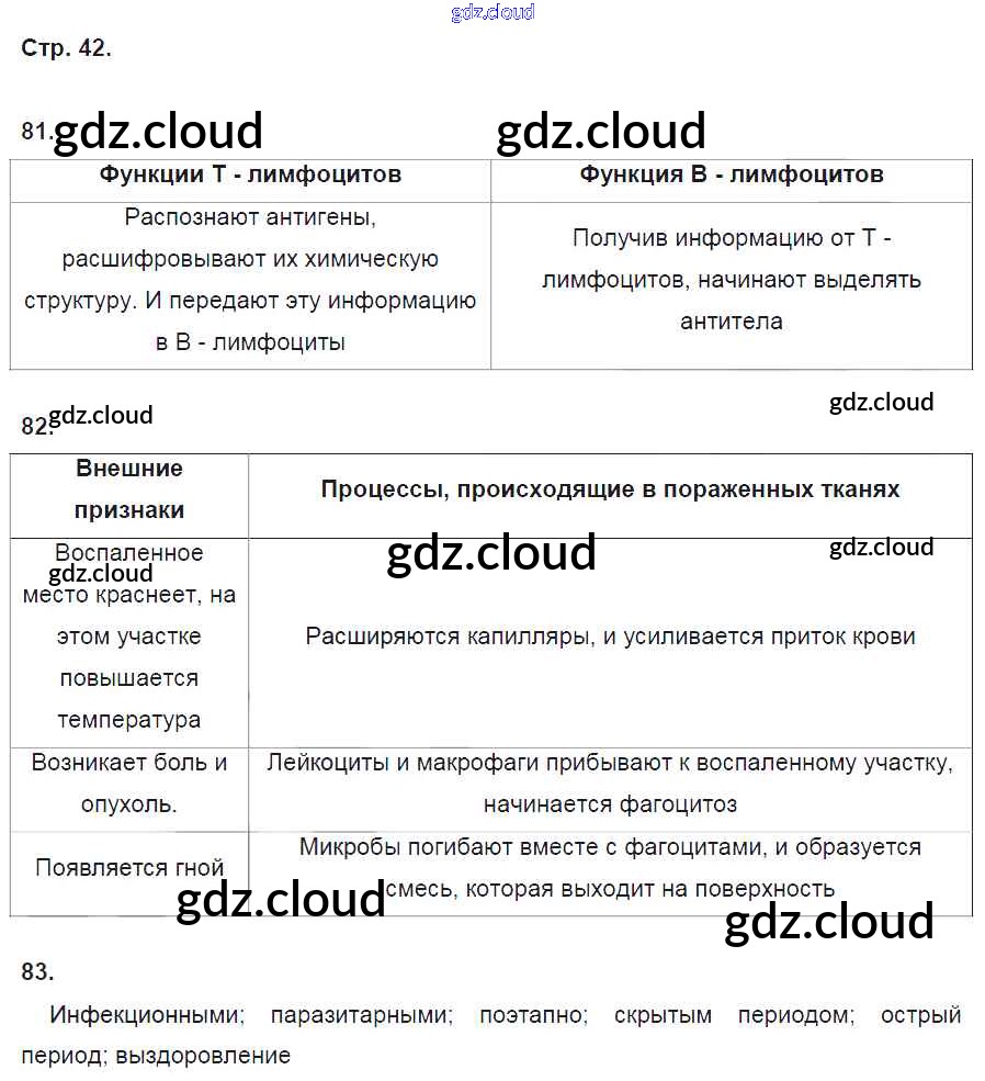 Ответ на задание 42 Рабочая тетрадь Биология за 8 (восьмой) класс Колесов, Маш, Беляев УМК 2018 ФГОС онлайн и без номера телефона.