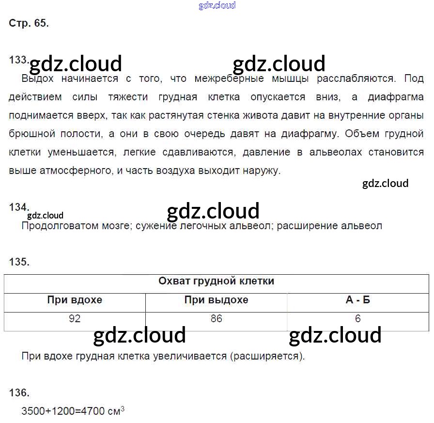 Ответ на задание 65 Рабочая тетрадь Биология за 8 (восьмой) класс Колесов, Маш, Беляев УМК 2018 ФГОС онлайн и без номера телефона.