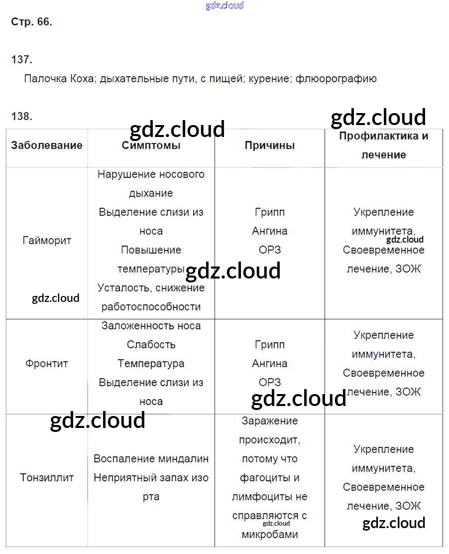 Ответ на задание 66 Рабочая тетрадь Биология за 8 (восьмой) класс Колесов, Маш, Беляев УМК 2018 ФГОС онлайн и без номера телефона.