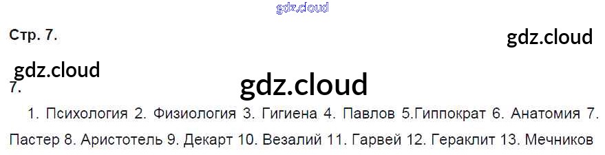 Ответ на задание 7 Рабочая тетрадь Биология за 8 (восьмой) класс Колесов, Маш, Беляев УМК 2018 ФГОС онлайн и без номера телефона.