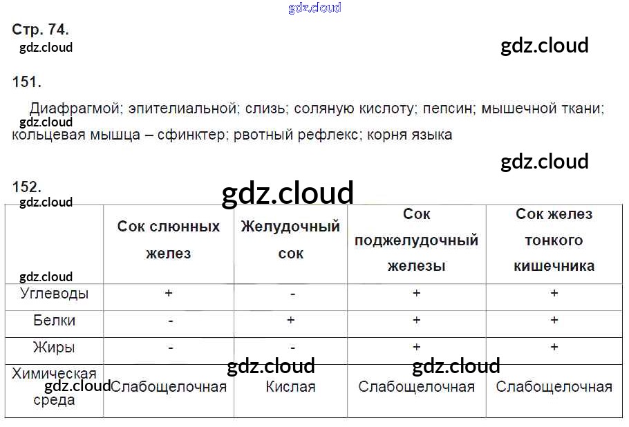 Ответ на задание 74 Рабочая тетрадь Биология за 8 (восьмой) класс Колесов, Маш, Беляев УМК 2018 ФГОС онлайн и без номера телефона.