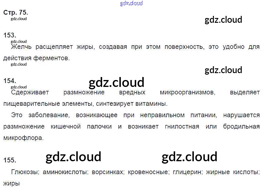 Ответ на задание 75 Рабочая тетрадь Биология за 8 (восьмой) класс Колесов, Маш, Беляев УМК 2018 ФГОС онлайн и без номера телефона.