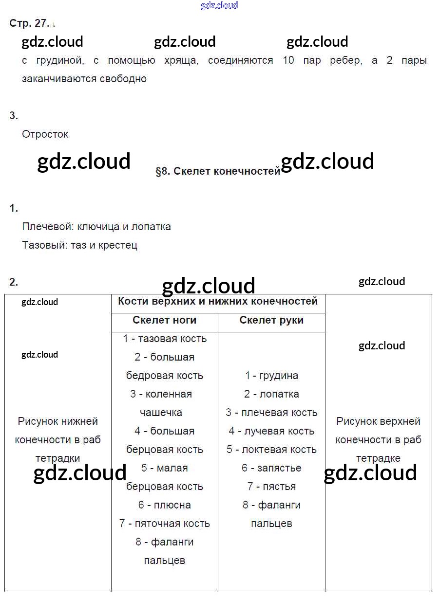 Ответ на задание 27 Рабочая тетрадь Биология за 8 (восьмой) класс Маш, Драгомилов Алгоритм успеха 2019 Часть 1, 2