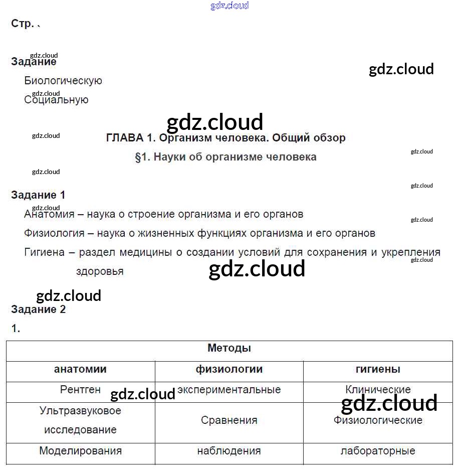 Ответы к Части 1. Страницы по Биологии 8 класс Рабочая тетрадь Маш Алгоритм успеха Часть 1, 2 Вентана-граф