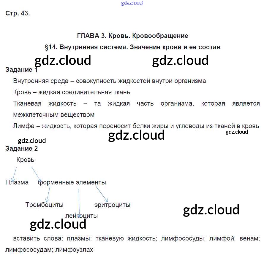 Ответ на задание 43 Рабочая тетрадь Биология за 8 (восьмой) класс Маш, Драгомилов Алгоритм успеха 2019 Часть 1, 2