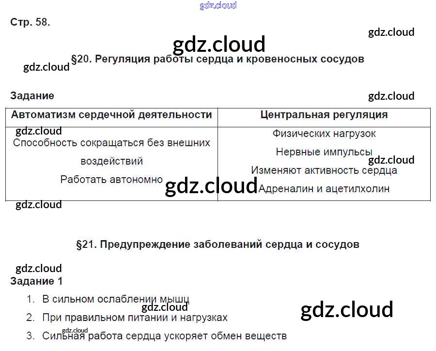 Ответ на задание 58 Рабочая тетрадь Биология за 8 (восьмой) класс Маш, Драгомилов Алгоритм успеха 2019 Часть 1, 2