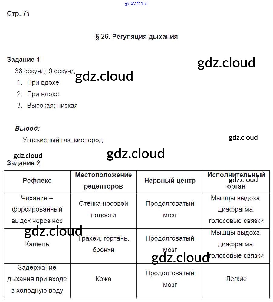 Ответ на задание 71 Рабочая тетрадь Биология за 8 (восьмой) класс Маш, Драгомилов Алгоритм успеха 2019 Часть 1, 2