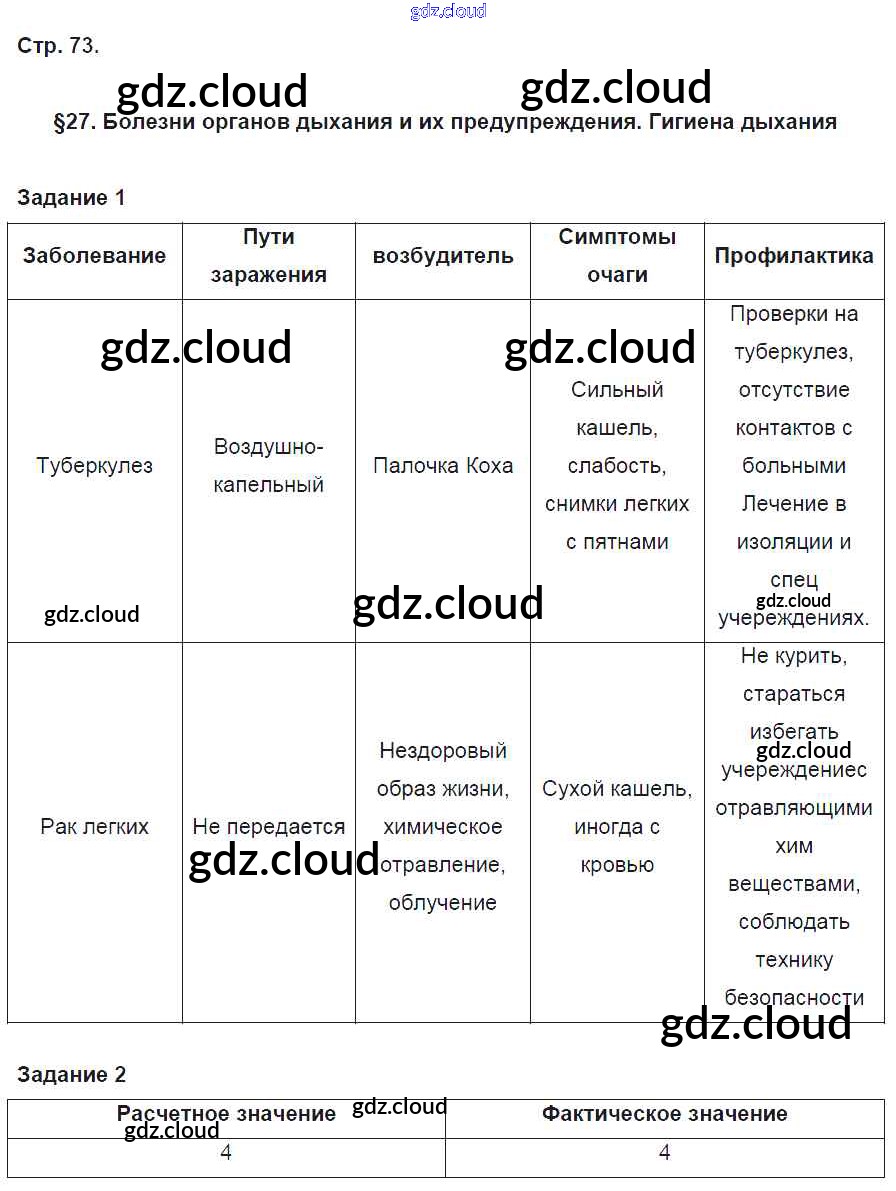 Ответ на задание 73 Рабочая тетрадь Биология за 8 (восьмой) класс Маш, Драгомилов Алгоритм успеха 2019 Часть 1, 2