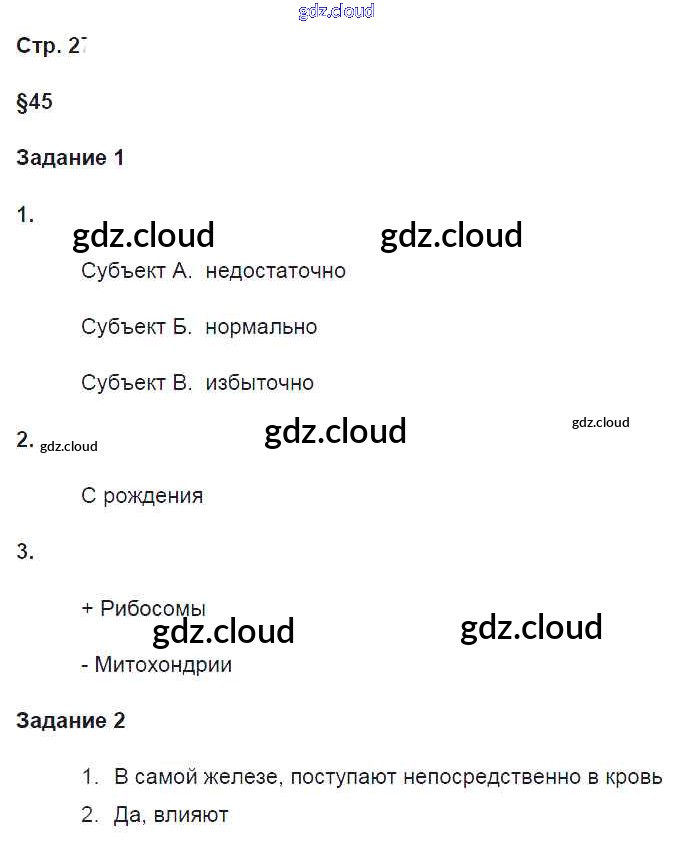 Ответ на задание 27 Рабочая тетрадь Биология за 8 (восьмой) класс Маш, Драгомилов Алгоритм успеха 2019 Часть 1, 2