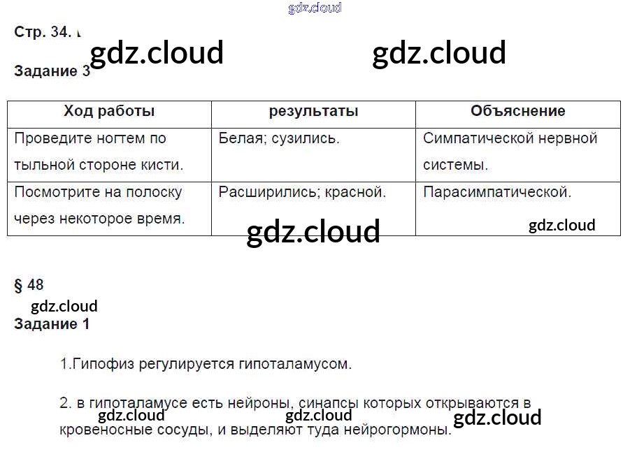Ответ на задание 34 Рабочая тетрадь Биология за 8 (восьмой) класс Маш, Драгомилов Алгоритм успеха 2019 Часть 1, 2