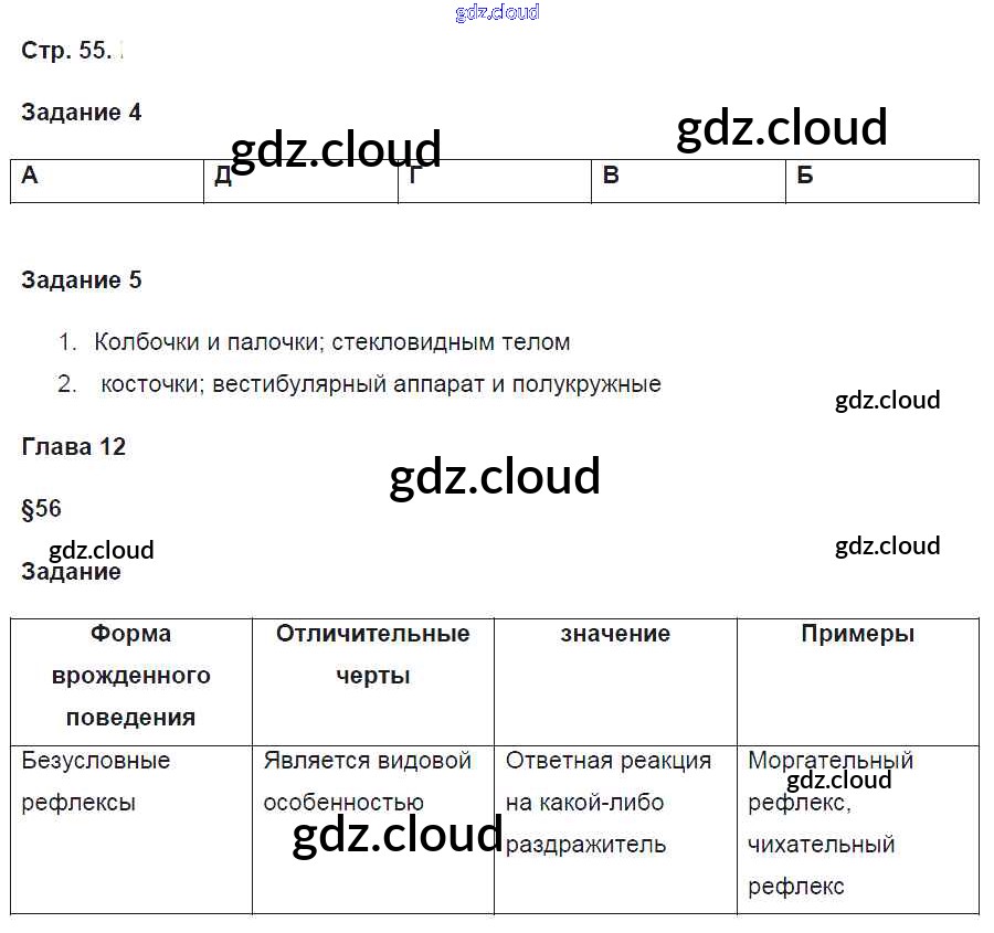 Ответ на задание 55 Рабочая тетрадь Биология за 8 (восьмой) класс Маш, Драгомилов Алгоритм успеха 2019 Часть 1, 2